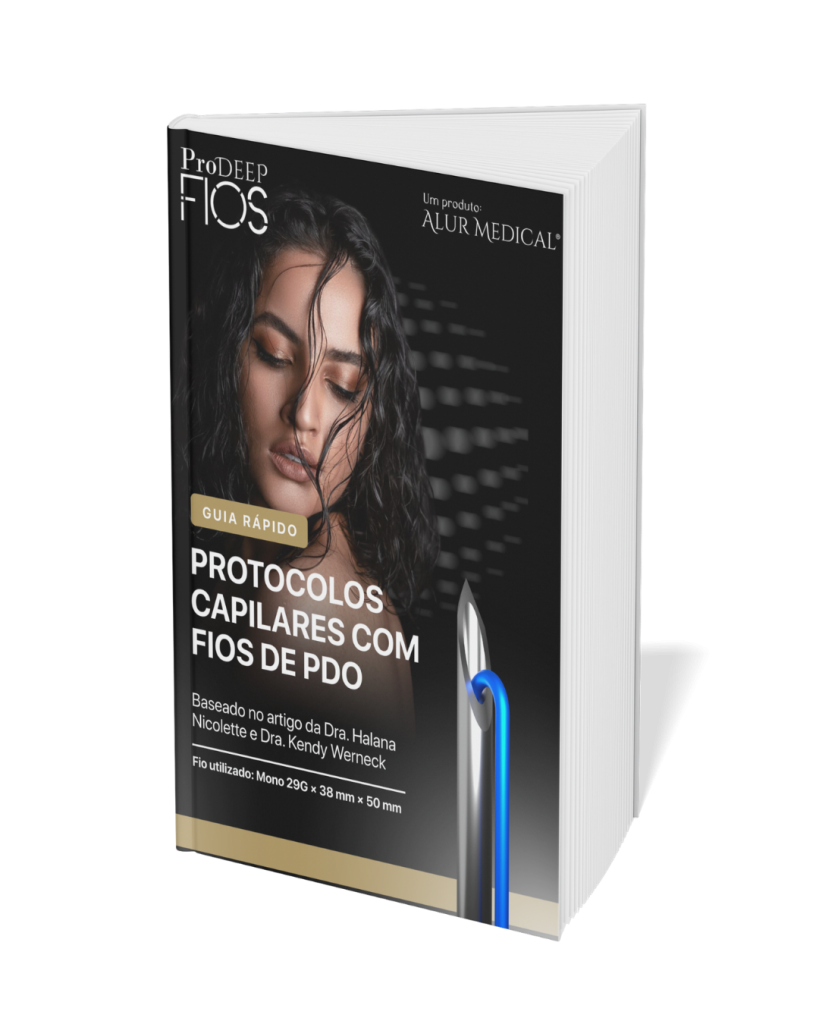 Os fios de PDO representam um avanço importante nos protocolos capilares, especialmente quando pensamos em estimular o ambiente folicular de forma contínua. O fio Mono 29G × 38 mm × 50 mm, utilizado em evidência científica recente, demonstra segurança, aplicabilidade e resultados sólidos em alopecia androgenética, alopecia areata e eflúvio telógeno crônico. Para o profissional da estética, compreender como integrar essa técnica ao tratamento global do paciente amplia o repertório terapêutico e potencializa resultados de forma natural e progressiva.