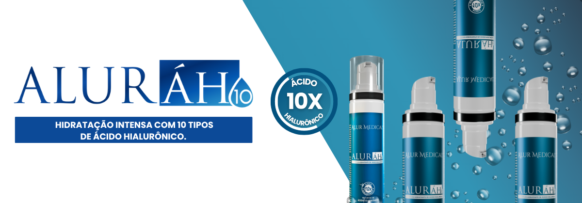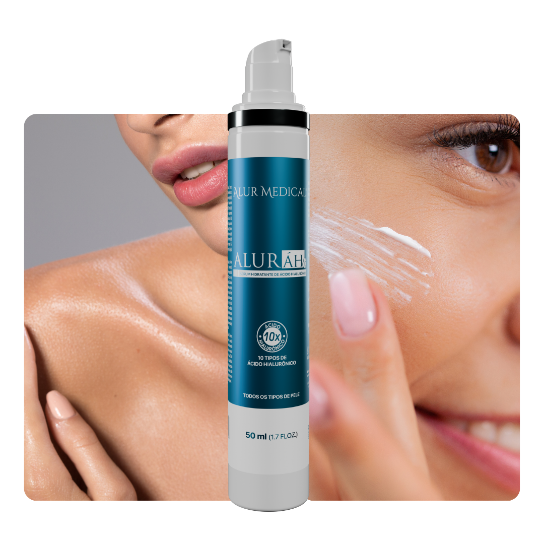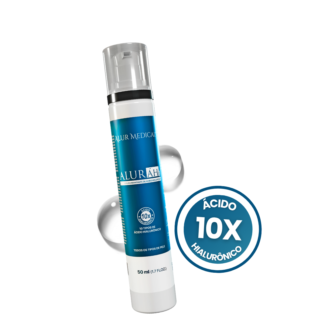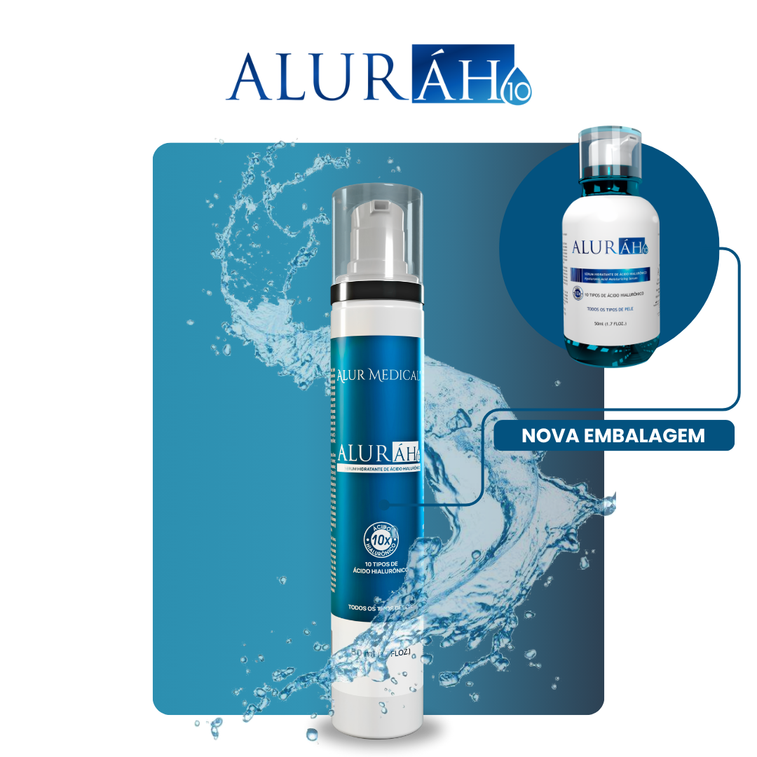 Aluráh10 é um sérum hidratante com 10 tipos de ácido hialurônico, proporciona intensa hidratação e resulta em uma pele mais hidratada, iluminada e saudável.