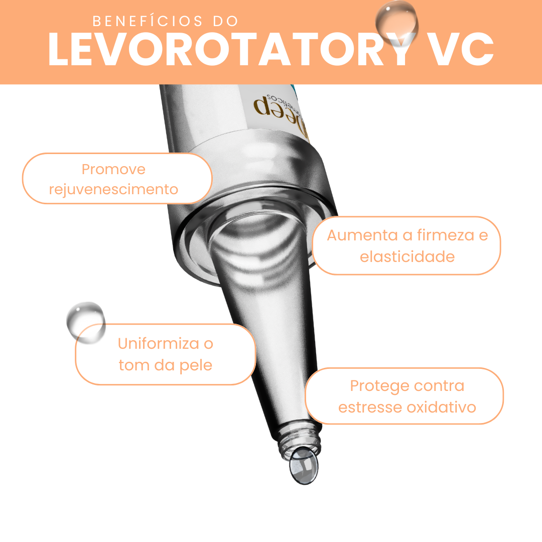 O Levorotatory VC Sérum é um dermocosmético antioxidante de alta potência, formulado para promover rejuvenescimento, firmeza, elasticidade e uniformidade da pele. Com ativos como Vitamina C, Ácido Hialurônico, Niacinamida e Elastina, combate sinais de envelhecimento, estresse oxidativo e manchas, proporcionando uma pele mais radiante e saudável.